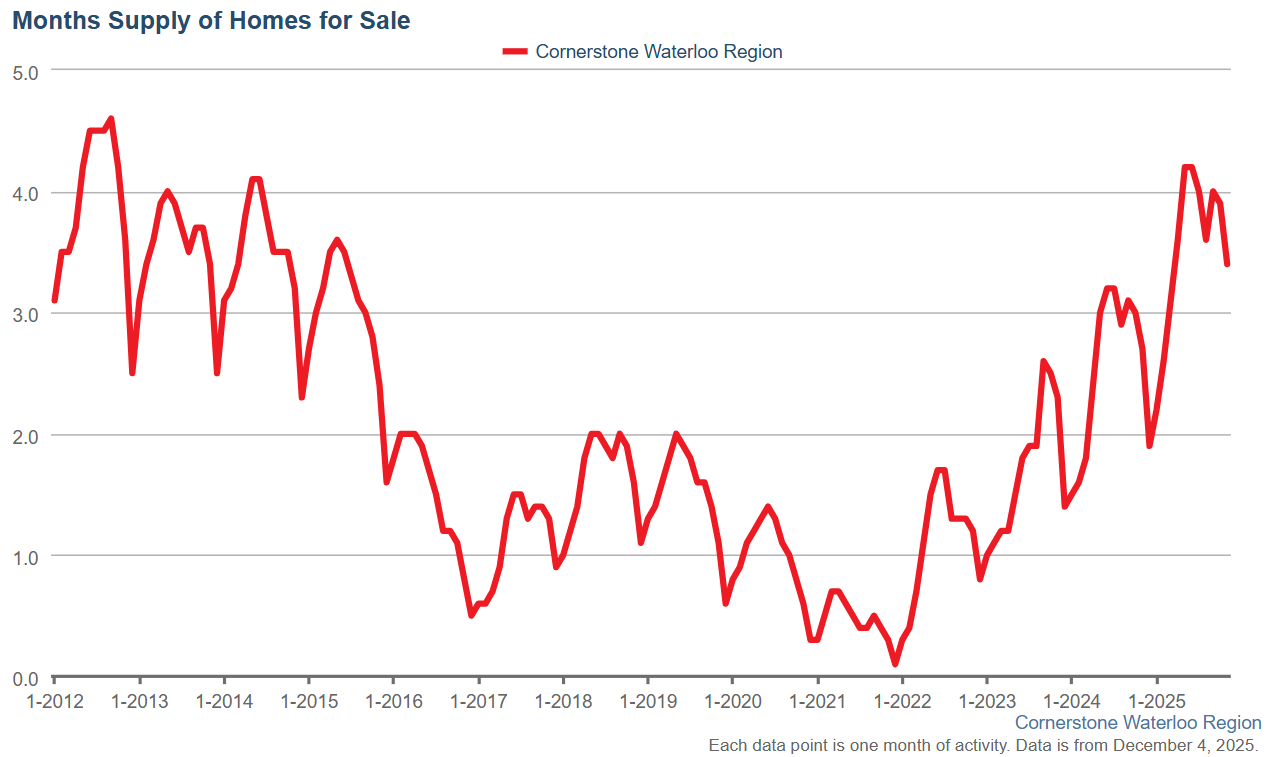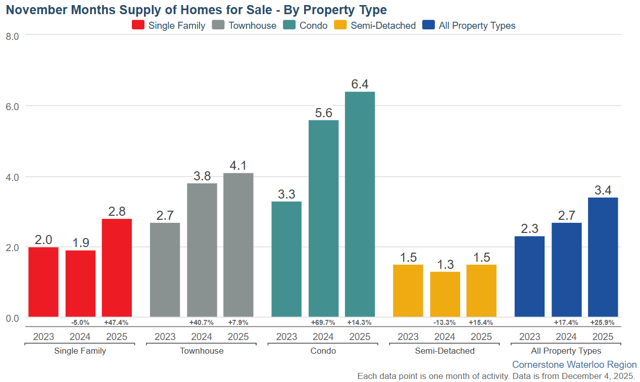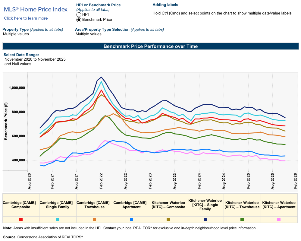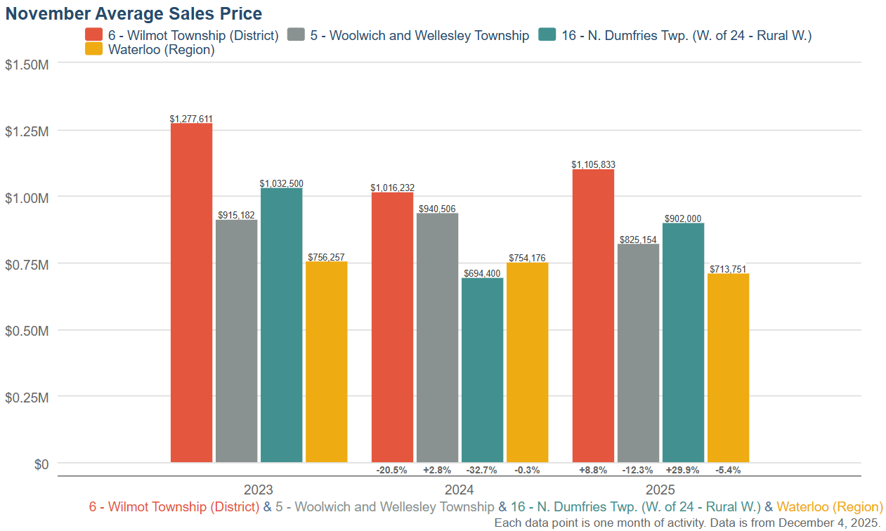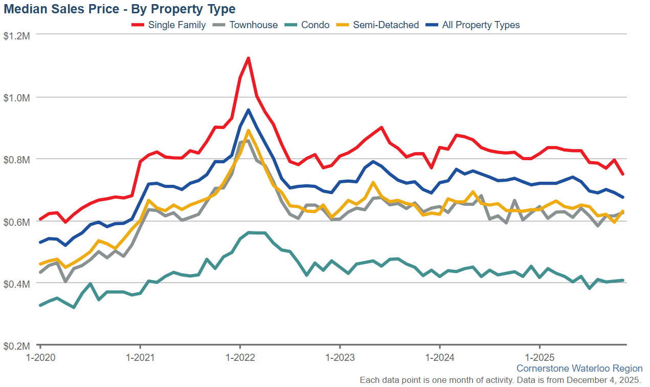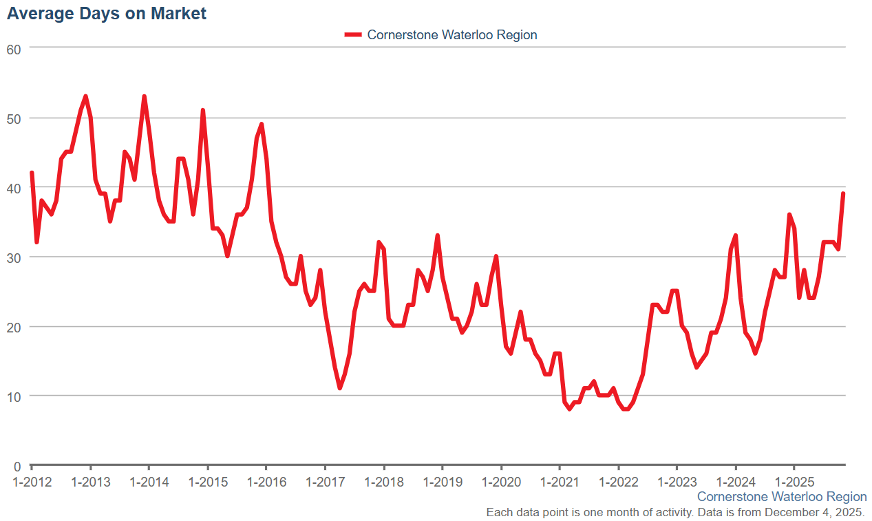“We saw a continued cooling of the housing market in November with sales down nearly 15 percent year-over-year and prices adjusting accordingly. While seasonal slowdowns are expected at this time of year, softer demand has contributed to higher inventory levels than we’ve seen in some time. These conditions offer a real opportunity for first-time buyers. Increased inventory and longer days on the market allow buyers to explore options thoroughly and, with their REALTOR®’s expertise, negotiate from a stronger position. The combination of Waterloo region being a highly desirable place to live and the lower interest rates makes me hopeful that buyers will be coming off the sidelines in the year ahead.”