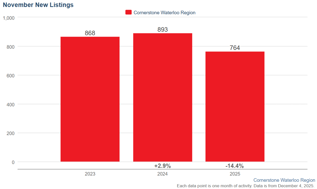 Last month’s home sales in Kitchener-Waterloo decreased by 14.8% compared to November 2024.