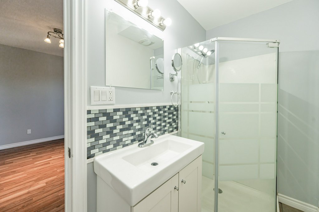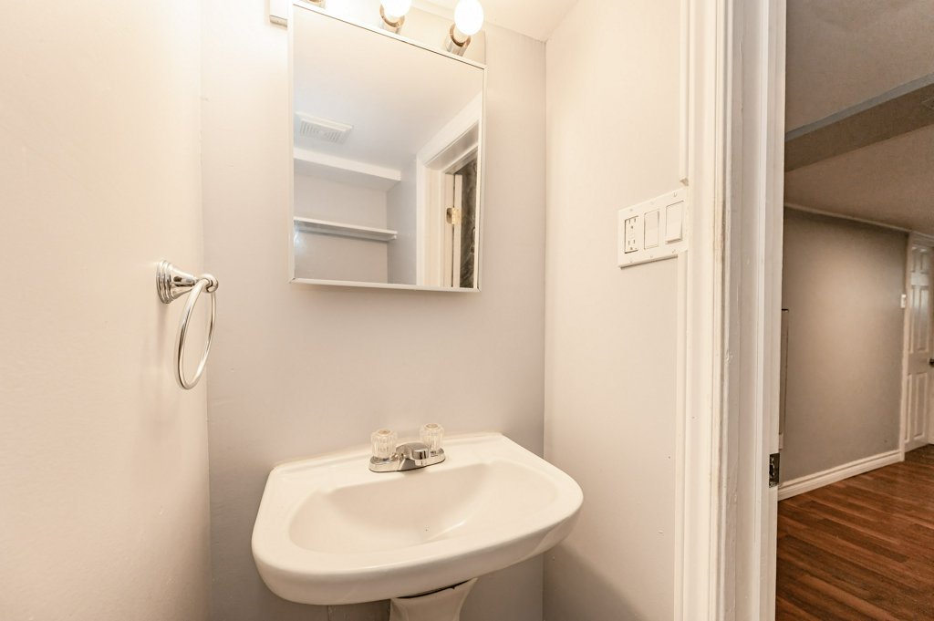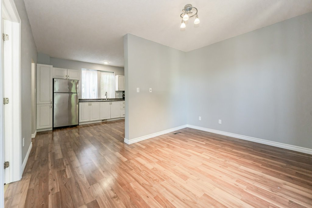 Enter through the door at the rear of the house into the front foyer of this unit, and your own in-suite, stackable laundry. The eat in kitchen has been updated with stainless steel appliances with large open concept floor plan shared with the living room. Enjoy the hardwood flooring throughout the main level. The master bedroom is located on the main floor with a cheater 3 piece bathroom attached with access to the living room. Walking down into the basement, there is an extra large bedroom. The basement rec room is a great place for a TV hangout space, with the added benefit of an additional 2 piece bathroom attached.