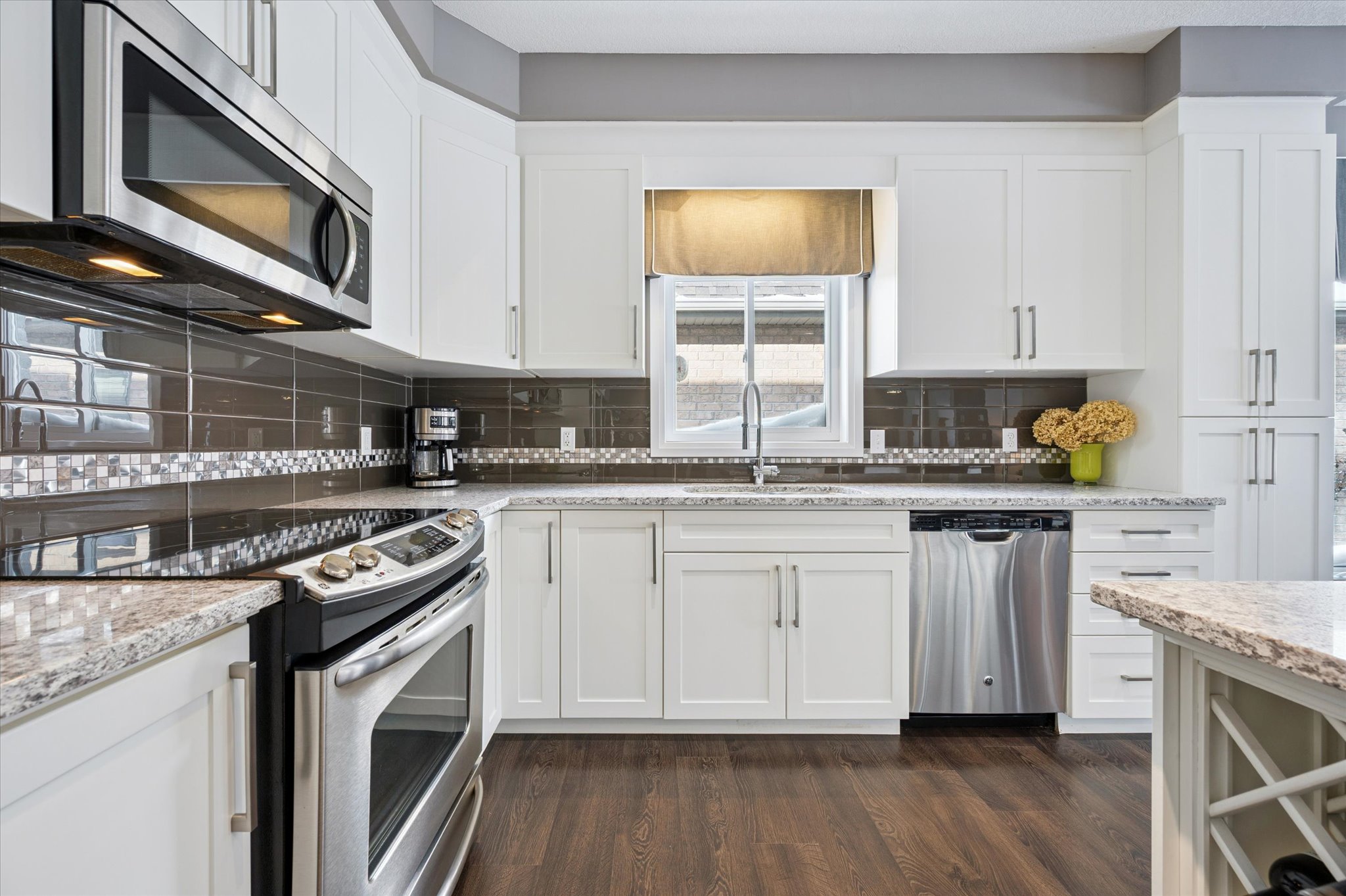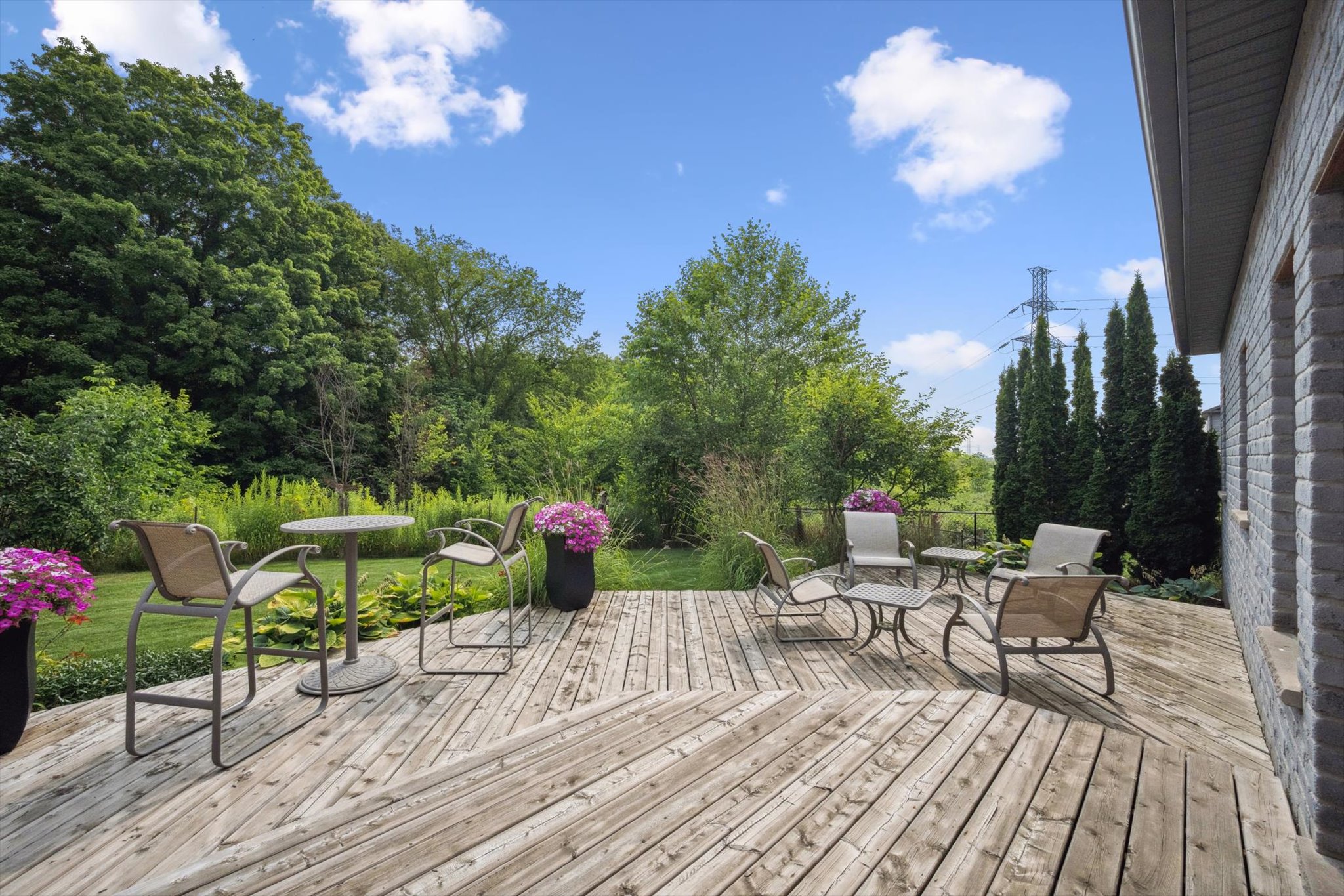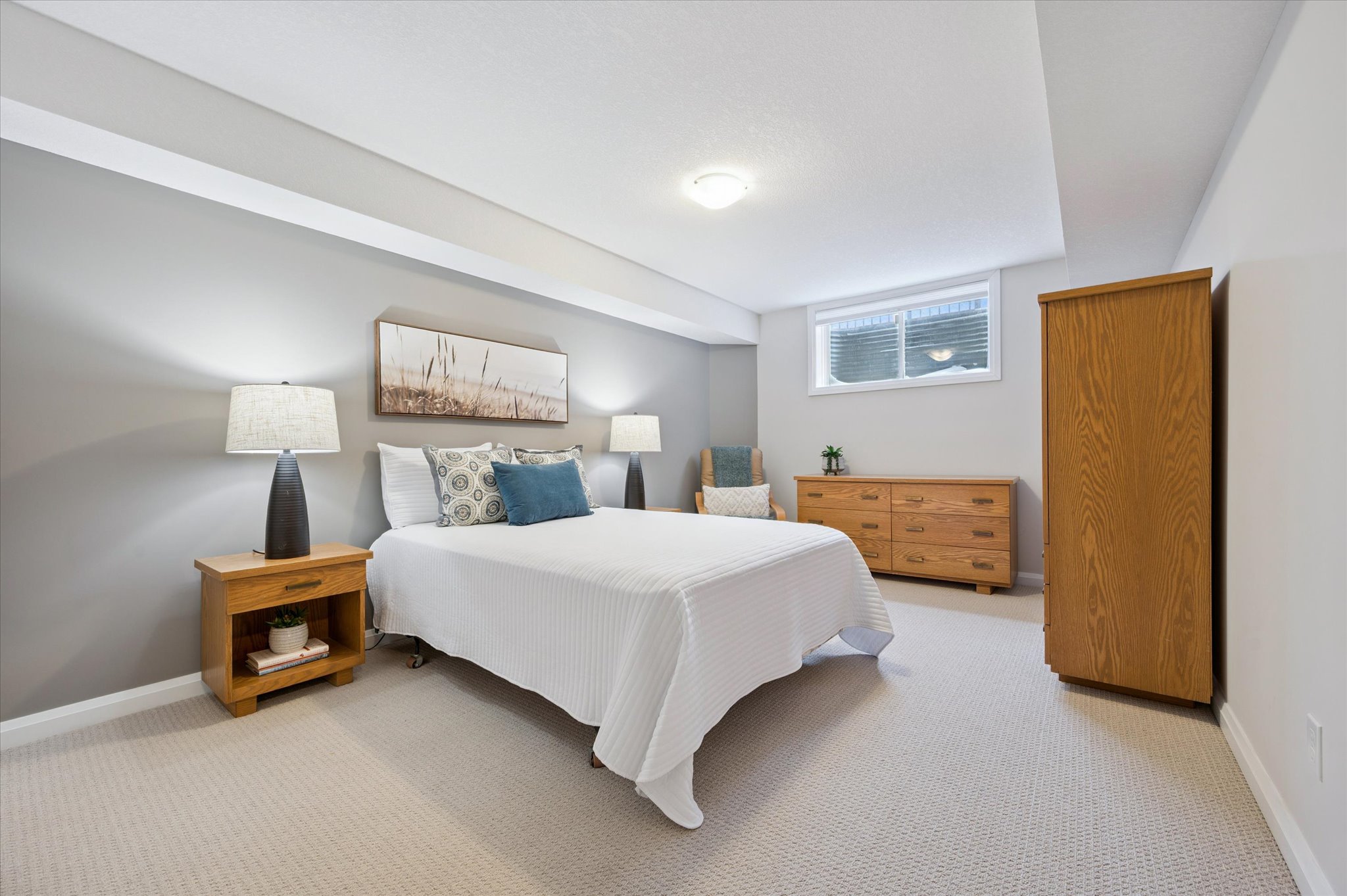 Enter through the front foyer, with an adjacent formal dining room with an extra large window looking out onto the front porch. Don’t need a formal dining room? This would be a perfect home office or living room. Head past the 2 piece powder room and into the modern open concept kitchen and great room. The kitchen’s ample cupboard space, wine rack, oversized island and built-in appliances, makes this space the heart of the home. The great room features plenty of natural light and an impressive custom gas fireplace. The rear sliding doors lead out to the backyard, overlooking the private green garden and trees. The large 2 tiered back deck has a BBQ line and is perfect for those summer family gatherings! The main floor primary bedroom has 2 closets and a 4 piece ensuite with walk-in shower and a freestanding bathtub. There is one additional bedroom found on the main floor. The partially finished basement features a large bedroom and 4 piece bathroom. If you are looking for separate living quarters for additional family members, the unfinished half of this basement is the ideal opportunity to design exactly what works for your needs.